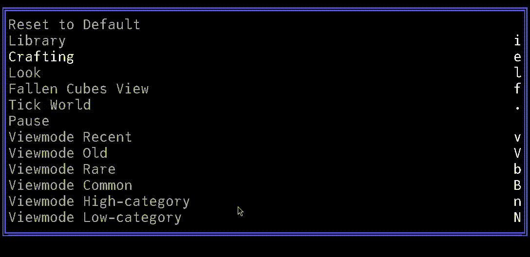 Yet another release, and so soon! Today you get, most importantly, key rebinding. Almost every key in the game is now rebindable, with the exception of a few niche and optional menu-specific keys.